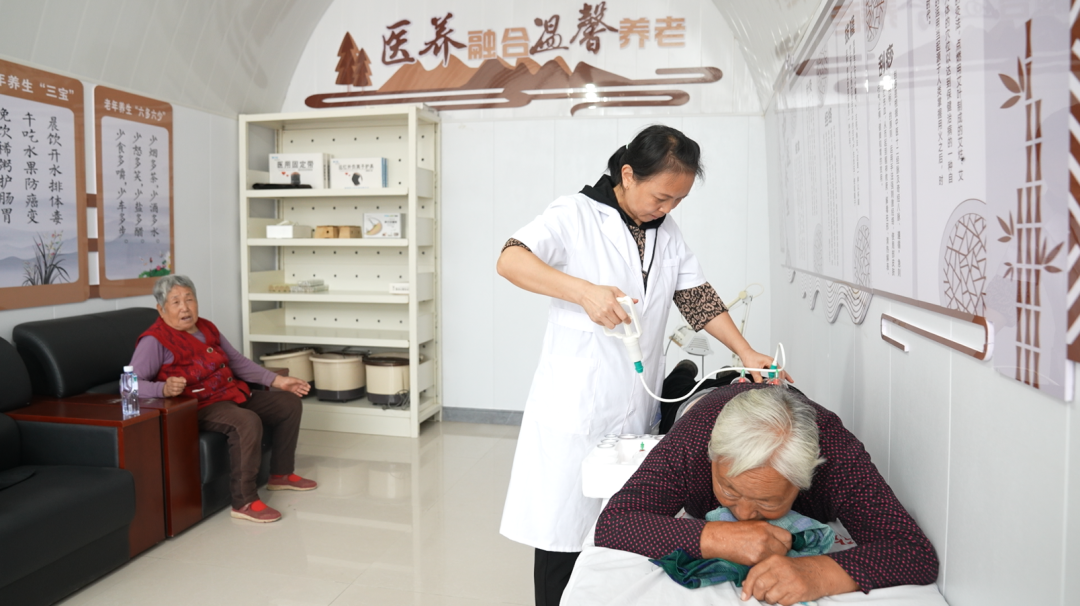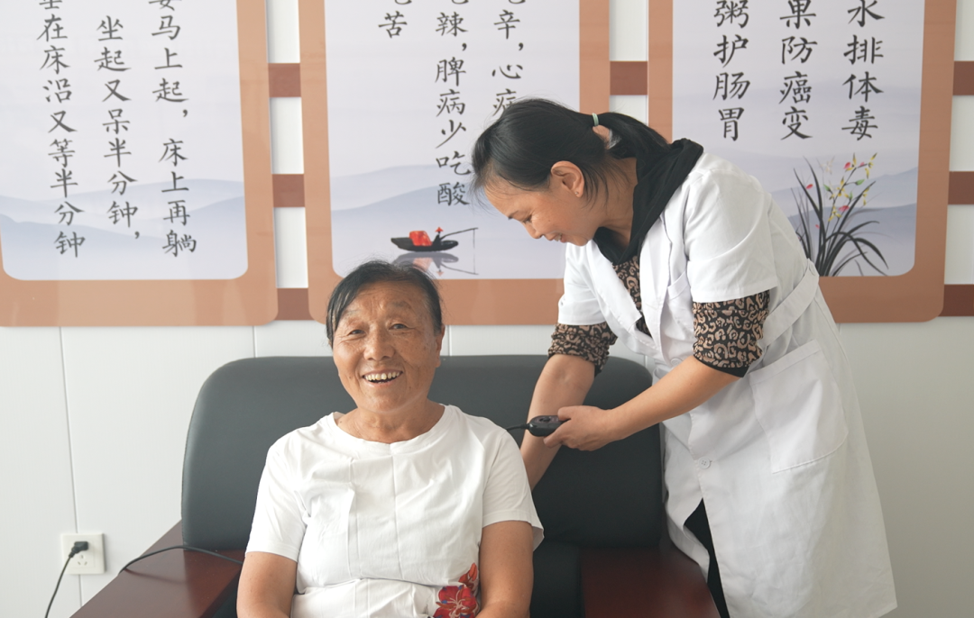 “医养融合”是杨家沟村慈善幸福家园的特色服务之一,该村依托卫生室打造健康小屋,引进智能健康管理一体机、理疗床等医疗设备,为老年人提供拔罐、艾灸、肩颈按摩、血压血糖监测等服务,提升全村老年人的健康幸福指数。
